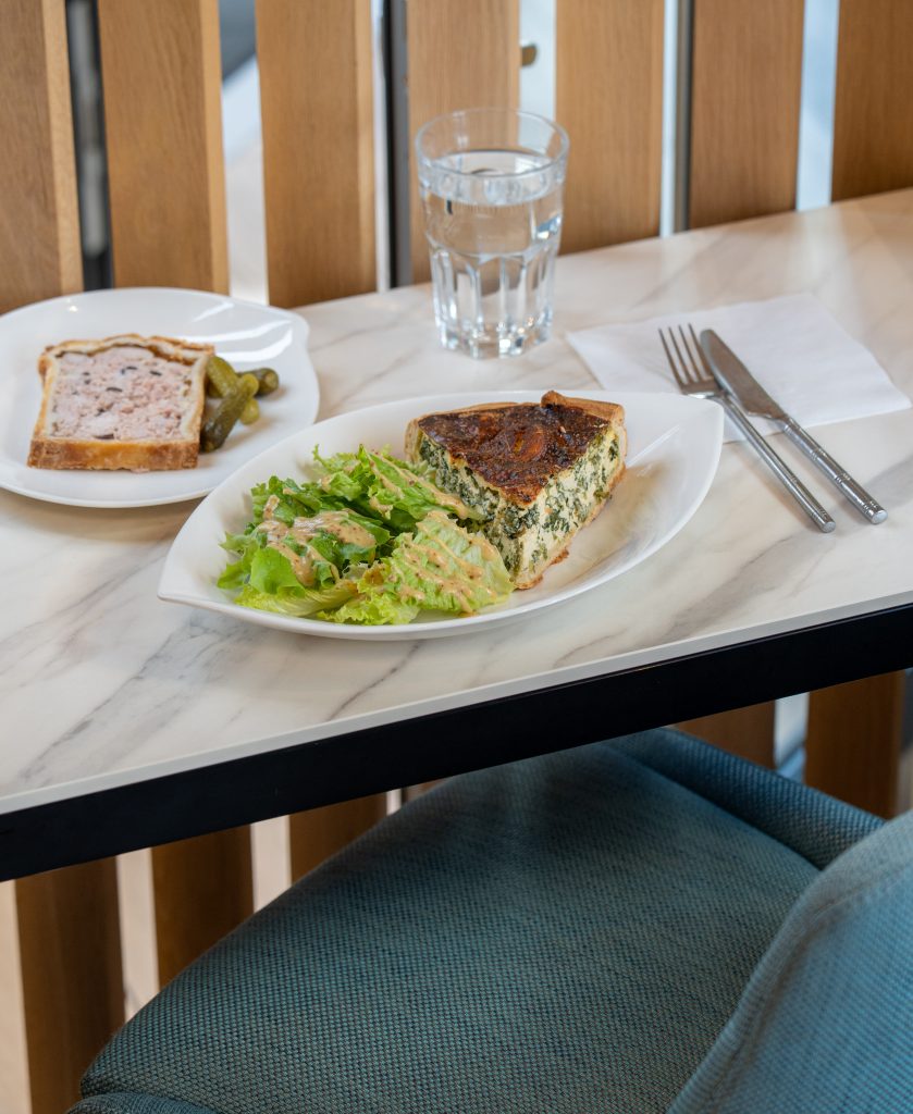 AJOUTER AU PANIERTous les midis, venez profiter de notre offre salée faite maison ! Nous vous proposons notre pâté croute maison servi avec salade verte, ou bien un croque monsieur ou encore une belle part de quiche ! Laissez-vous tenter pour déguster des préparations de qualités.